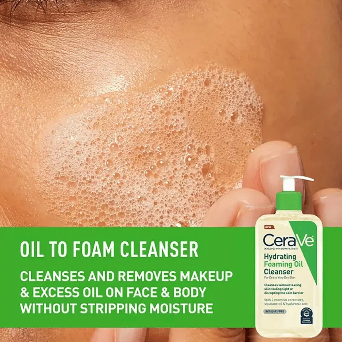 CeraVe Hydrating Foaming Oil Cleanser is formulated with three essential ceramides and squalane to lock in moisture and helps maintain the skin’s protective barrier, a feature especially beneficial to dry to very dry skin