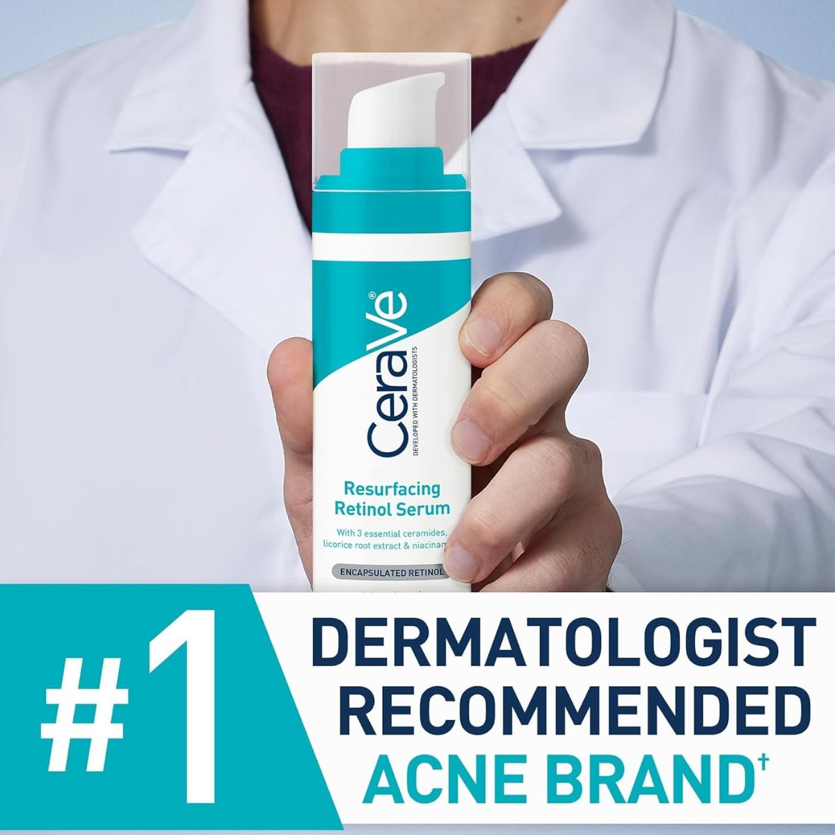 سرم رتینول ریسرفیسینگ سراوی (CeraVe) مدل Resurfacing Retinol Serum مناسب پوستهای مستعد جوش و دارای لکههای پس از آکنه حجم ۳۰ میلیلیتر