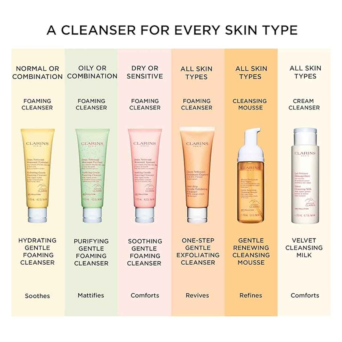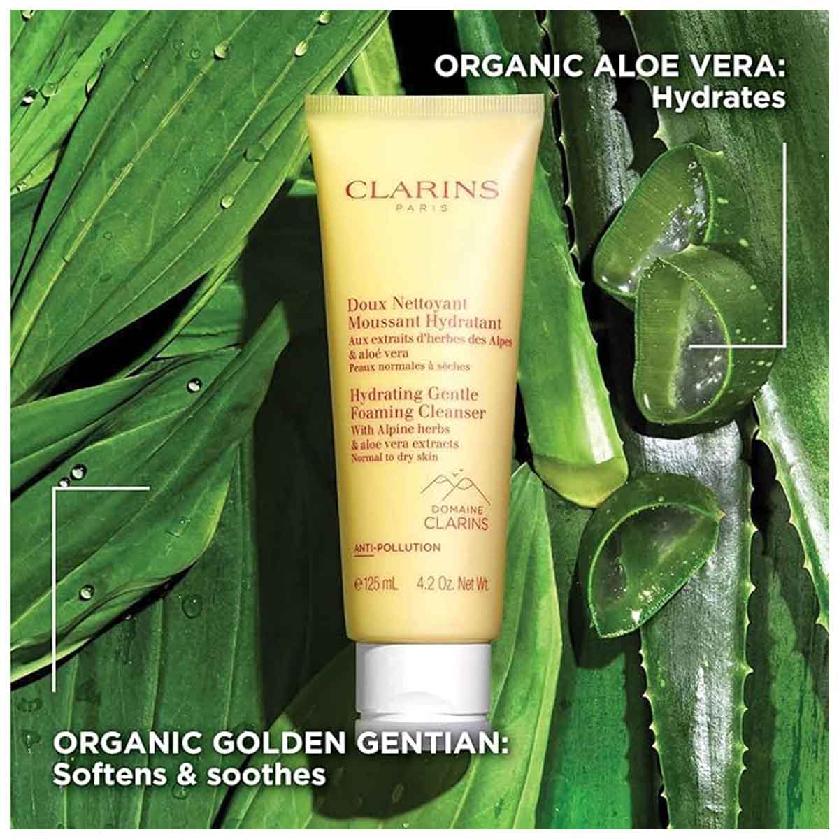 Ideal for normal to dry skin, this cleanser is enriched with Alpine Golden Gentian and Lemon Balm extracts sourced from the Clarins Alpine Herbarium, along with Organic Aloe Vera for intense hydration and soothing benefits.