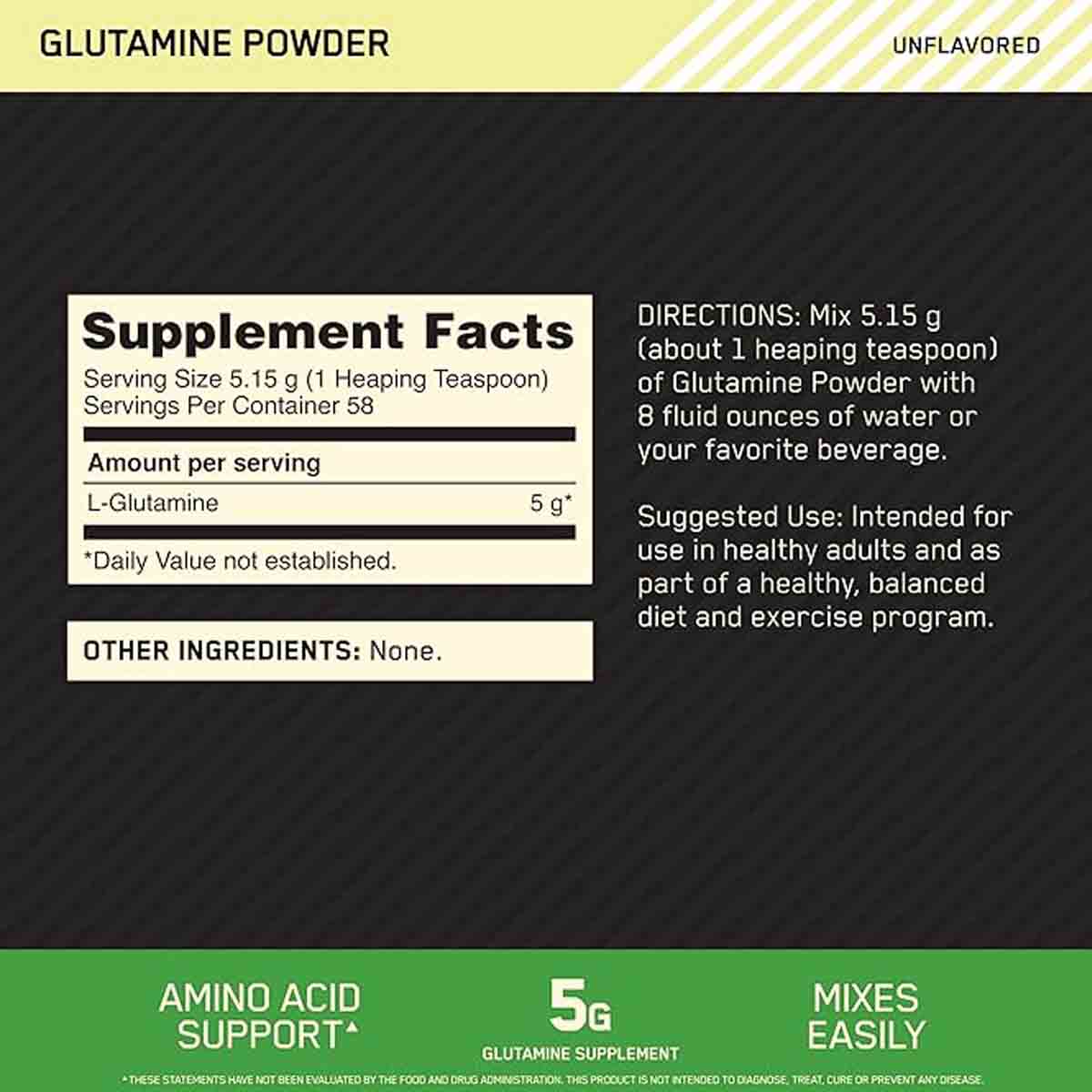 پودر گلوتامین اپتیموم نوتریشن (Optimum Nutrition) – مدل L-Glutamine Muscle Recovery – افزایش ریکاوری عضلات – بدون طعم – وزن ۳۰۰ گرم
